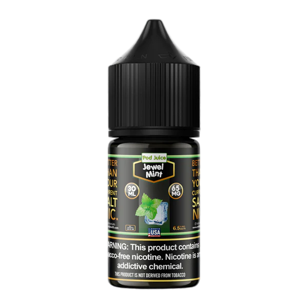 Pod Juice Jewel Mint 65mg is a high-nicotine, tobacco-free nicotine (TFN) salt e-liquid designed for pod systems and low-wattage devices. It offers a crisp, menthol-forward experience with a slightly sweet mint finish, making it popular among menthol enthusiasts and those seeking a stronger nicotine hit.